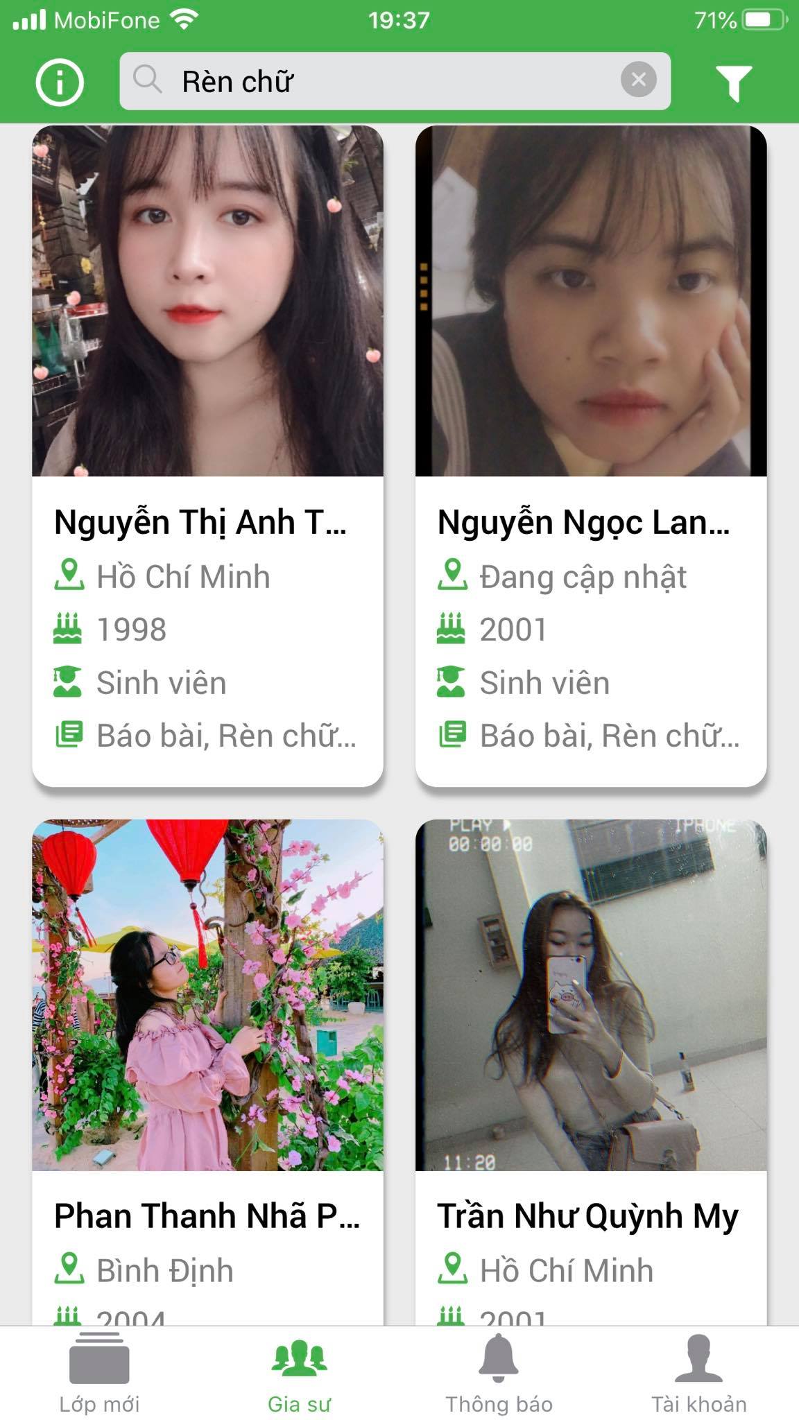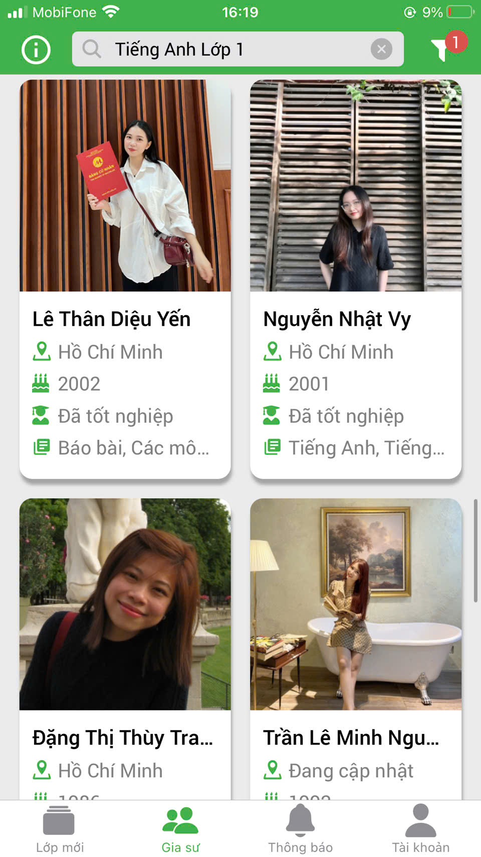 - Đội ngũ gia sư có kỹ năng, kinh nghiệm, giấy tờ (thẻ SV, GV, CMND) rõ ràng
